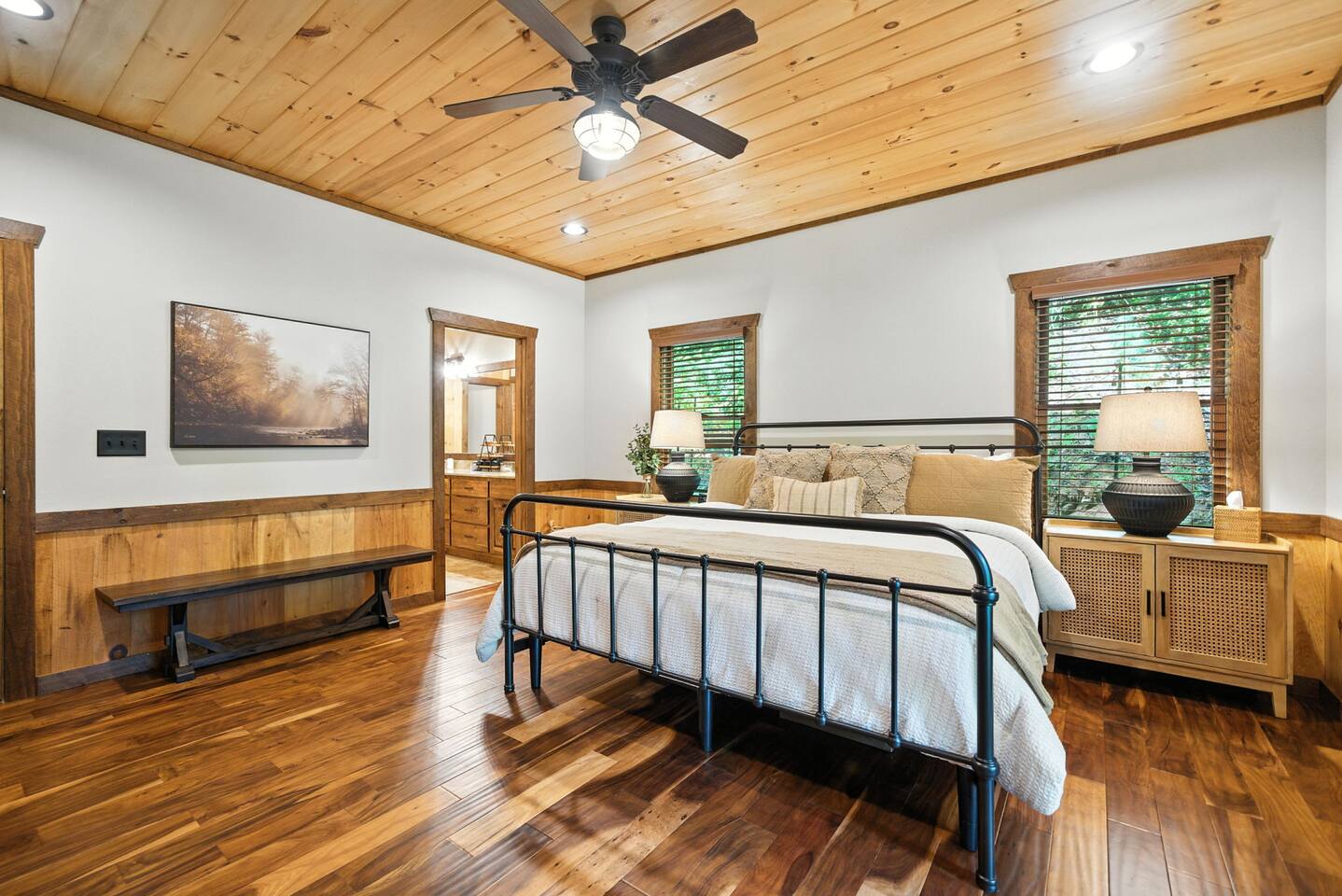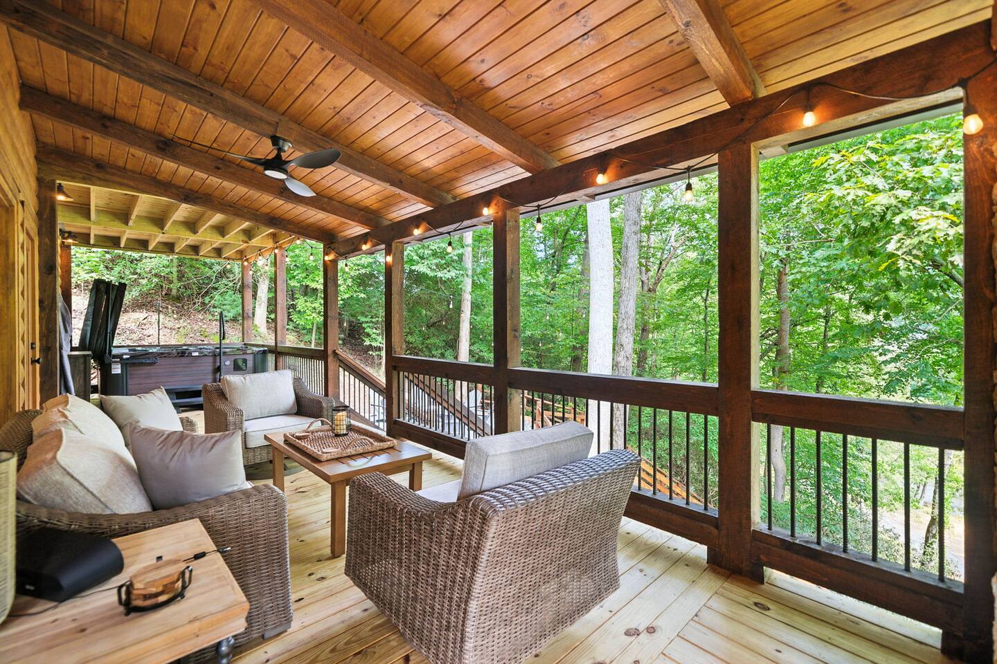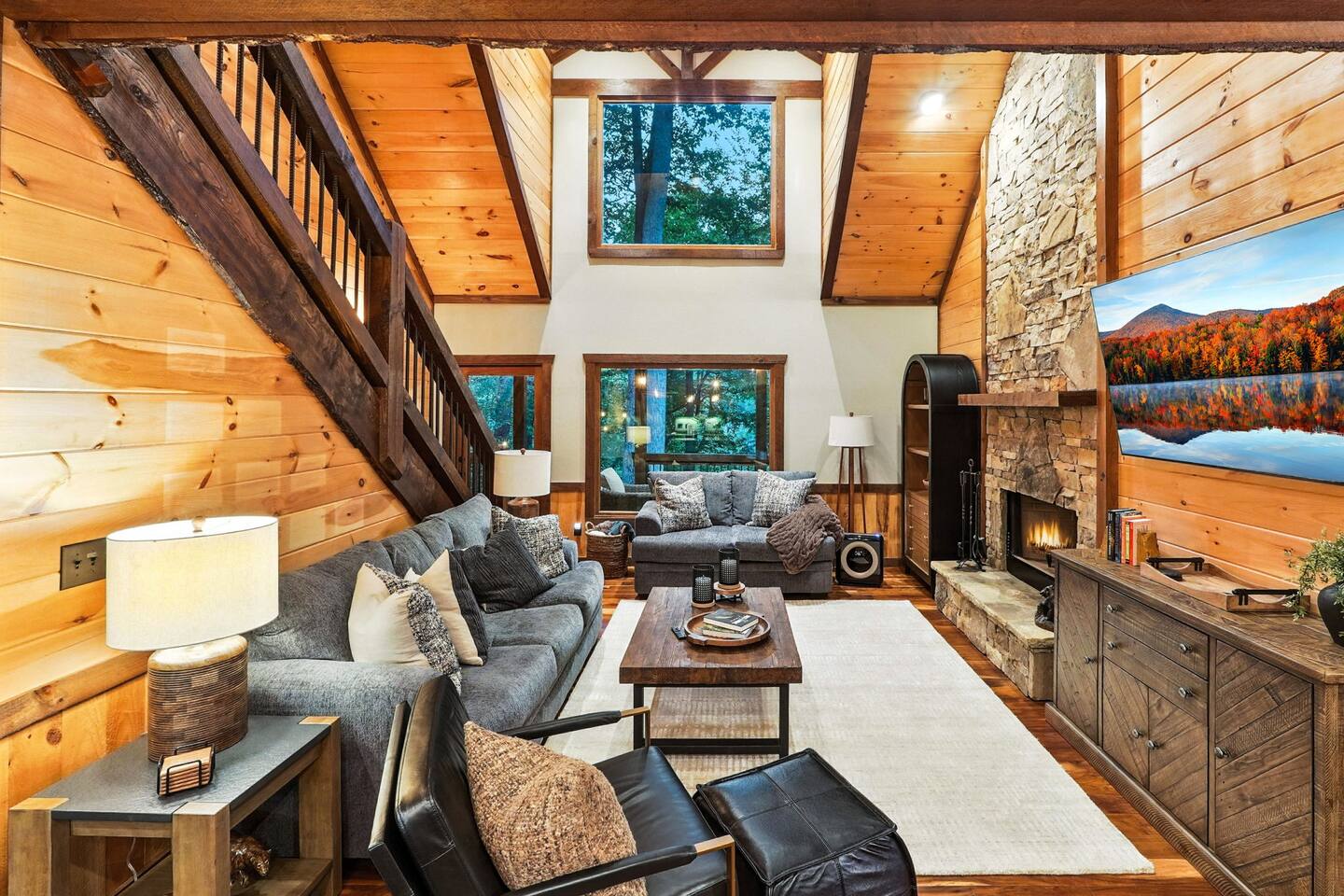 River’s Edge Retreat – Modern Cabin on the Coosawattee River Escape to a treetop cabin with: • River views, hot tub & porch swing • Gourmet kitchen & open-concept living • King suite w/ spa bathroom & deck access • Arcade Games & Smart TVs • Guest suite w/ balcony & coffee station • Fire pit, cornhole, kayak, Tubes, fishing poles & putting green • Resort pools, tennis and pickleball • 10 min to Ellijay, 25 to Blue Ridge • Close to restaurants, wineries, hiking, horseback riding & more